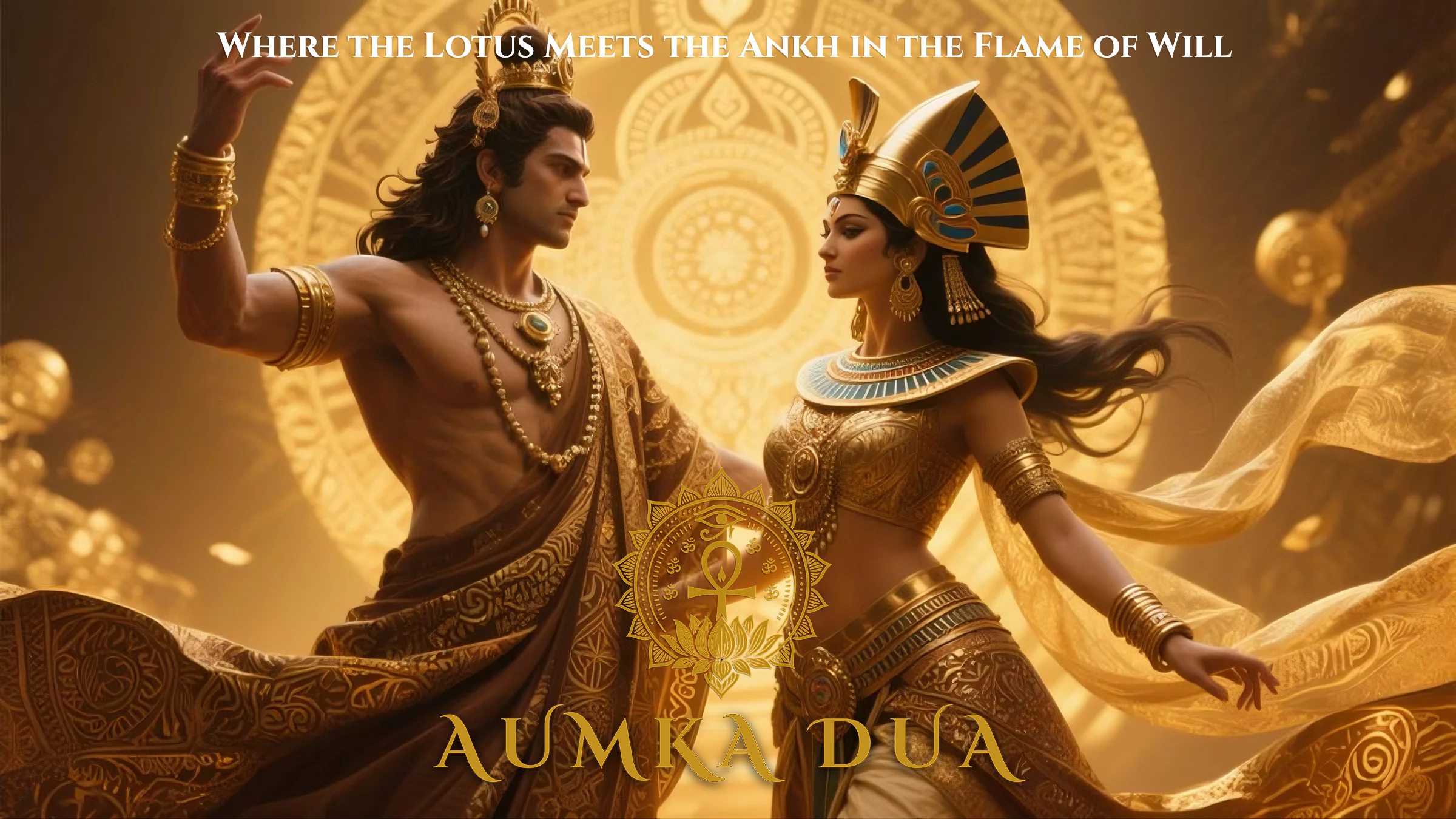 Founded by Soror Windley and Frater Heb Heru Hery Ka, AumKa Dua is the alchemical crucible where the sacred fires of Egypt entwine with the eternal mantras of India, transmuted through the blazing current of Thelema. Here, the lotus of the East unfurls its petals toward the ankh of the West, both illuminated in the Flame of Will—the heart of our Work.